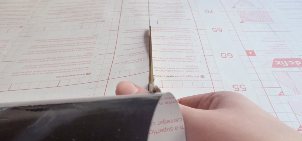 Vous allez donc couper 2 morceaux d'adhésif effet marbre noir, un peu plus grands que le MDF (env 59x34cm pour une marge confortable)